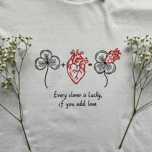 Tricou cu mâneci rulate "Every clover is lucky", White