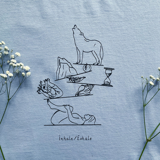 Tricou cu mâneci rulate "Inhale/Exhale", Serene blue