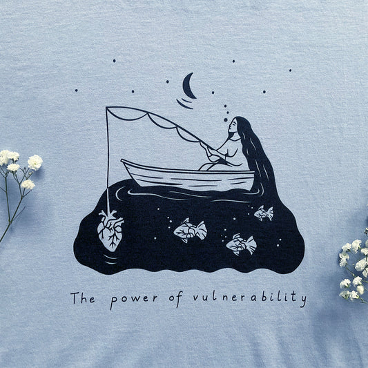 Tricou cu mâneci rulate "Power of vulnerability", Serene blue